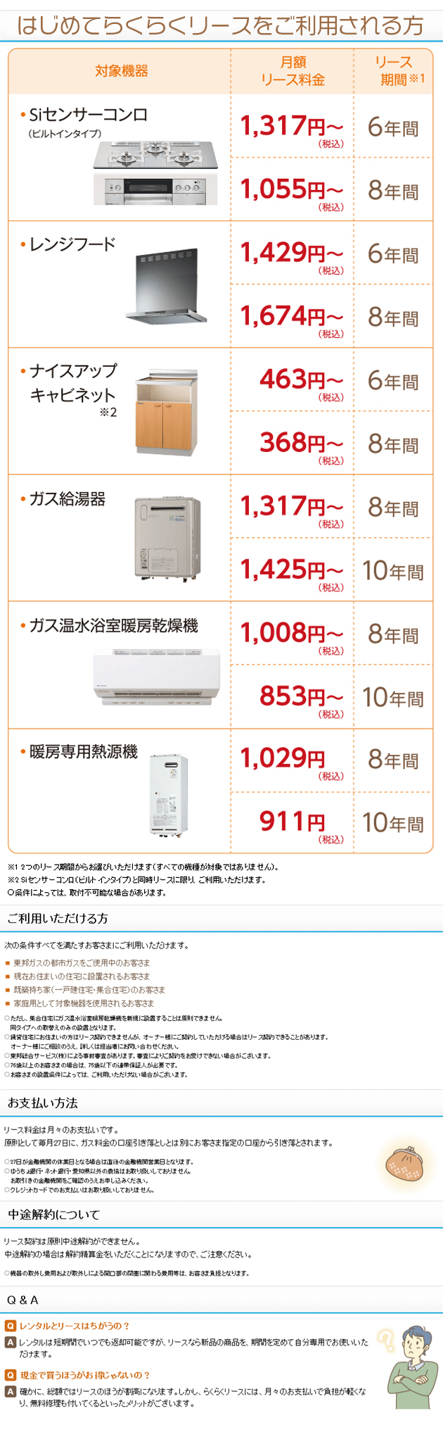 らくらくリースで最新のガス機器がご使用できます